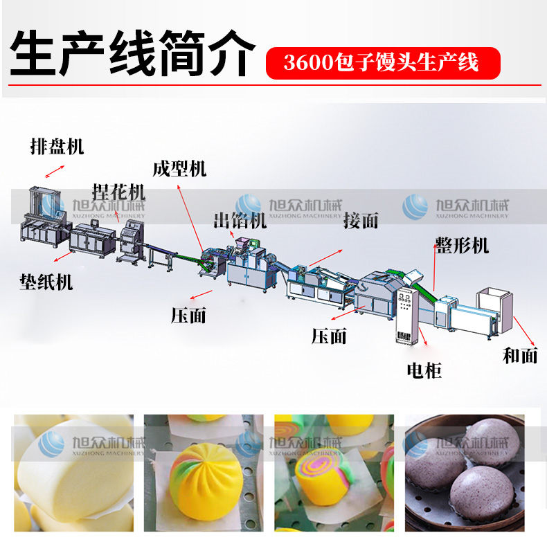 3600包子饅頭生產線,免費學習配方工廠有專業的培訓部門,購買生產線即可免費學習工藝配方,豐富的配方工藝能增加您的客戶源。