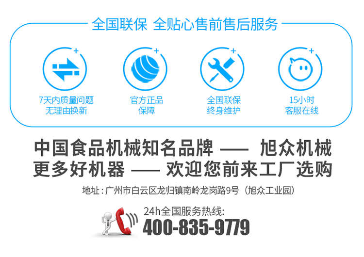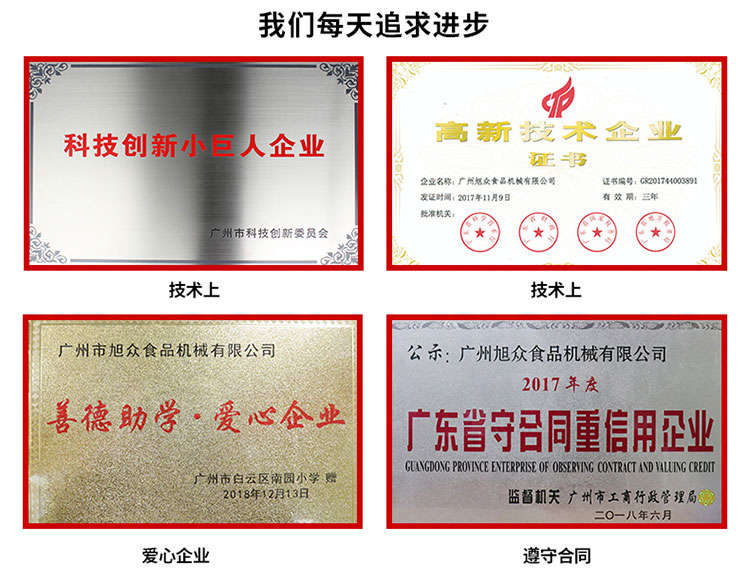 廣州旭眾食品機械有限公司是一家集科研開發,生產設計,營銷服務為一體的現代化生產企業。現代化生產車間,精湛制造技術,所產機械歷經市場重重考驗,不斷贏得海內外客戶的贊譽。
