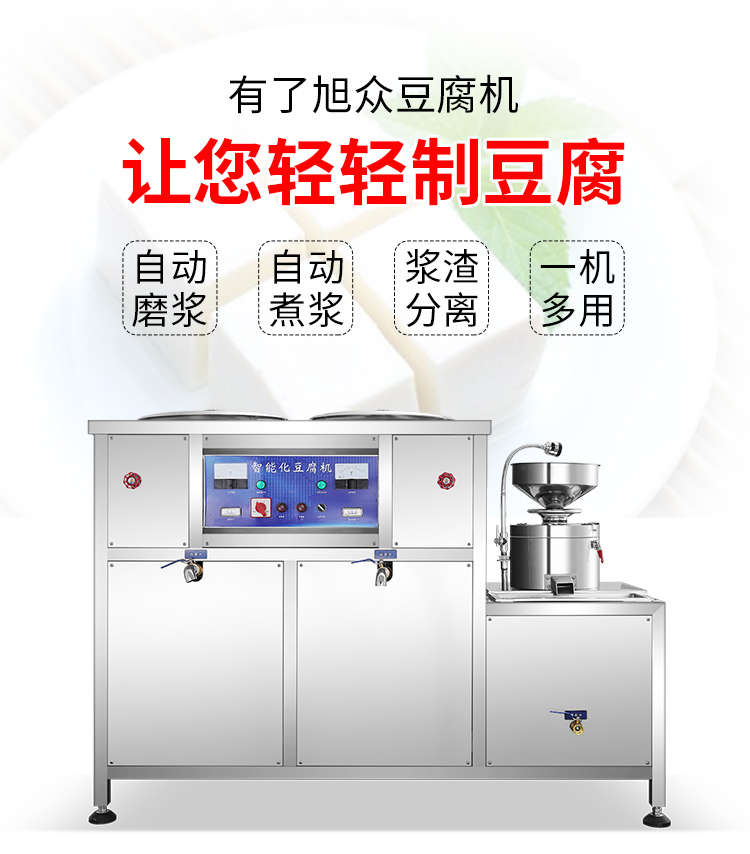 XZ-300型氣動壓榨豆腐機,智能豆腐豆漿機,雙桶煮漿高效生產現磨現煮,漿渣分離快速出漿。機器運行穩定不銹鋼材質打造,堅固耐用,安全衛生,時尚大方,易于清洗。