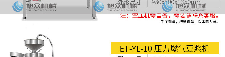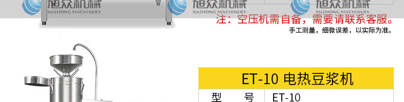 ET-YL-09壓力電熱豆?jié){機(jī),多功能商用豆?jié){機(jī),細(xì)、香、濃。我們珍惜每一顆大豆,讓每顆大豆進(jìn)發(fā)營養(yǎng)價值。旭眾豆?jié){機(jī)做您的招牌豆?jié){打磨細(xì)膩、口感香濃、回味無窮。