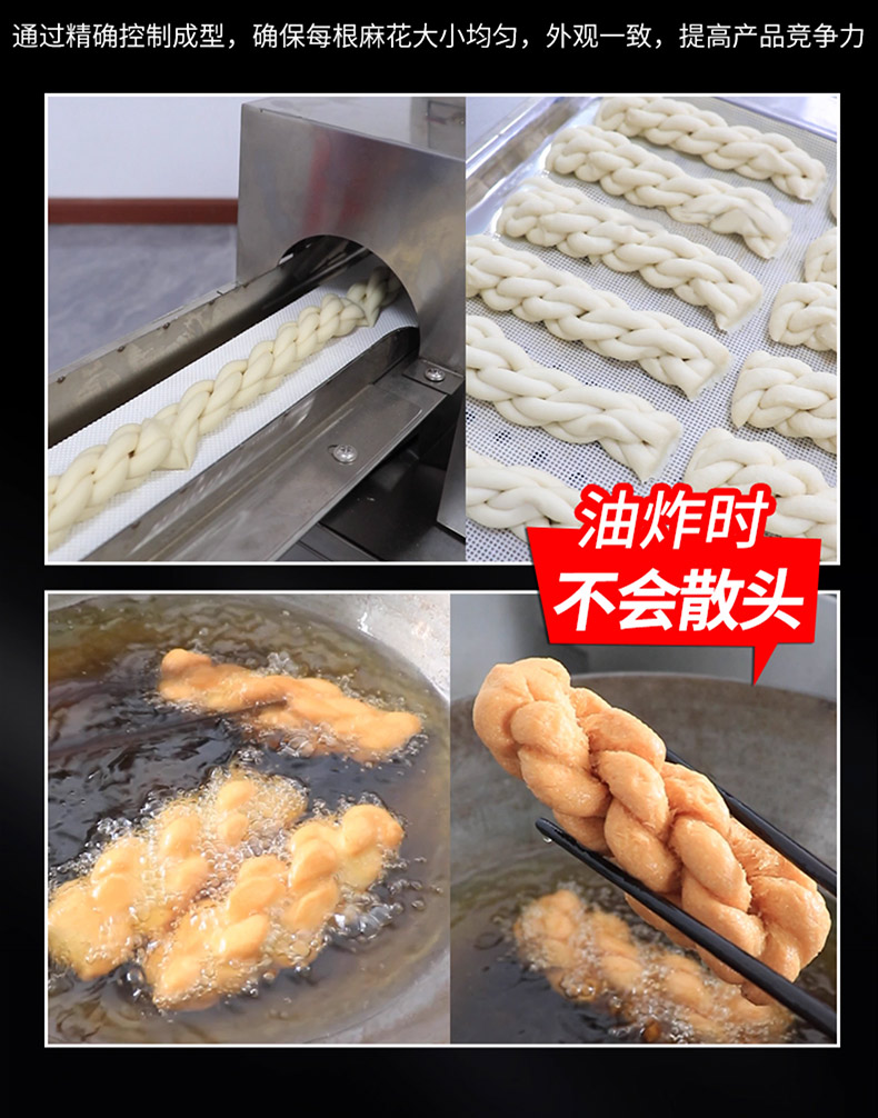 XZ-MH-200麻花機,技術支持、贈送配方、支持定制,1小時加工60斤麻花。切段均勺、且不粘面,麻花長短可調。可通過調節切刀時間、控制麻花的長度。通過精確控制成型,確保每根麻花大小均勻,外觀一致,提高產品競爭力。