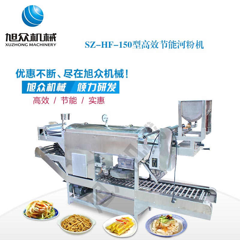 SZ-HF-150高效節能河粉機,用高效節能河粉機生產的河粉,完整保全了大米的營養成分,河粉品質一流,既營養豐富,又衛生可口、美味無窮。