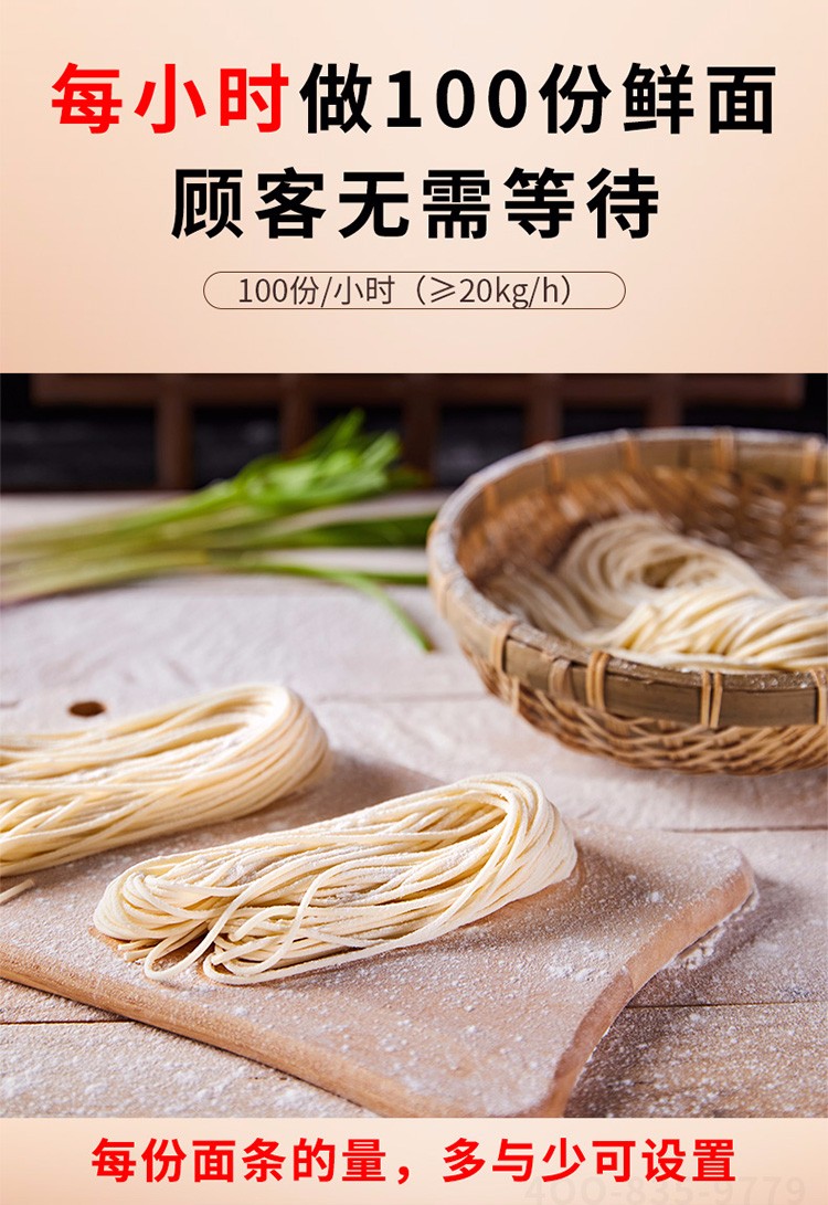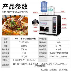 全自動商用快速出面電動素面濕面M500臺式制面機器,20秒全自動出面,全程無需看管。一鍵出面,面做好,自動停。均勻滴漏加水系統,水面比例把握更好。自動滴漏加水系統,運作過程加水更均勻,適量控水,面條更有嚼勁。