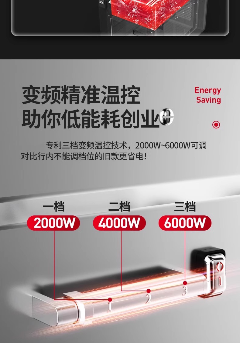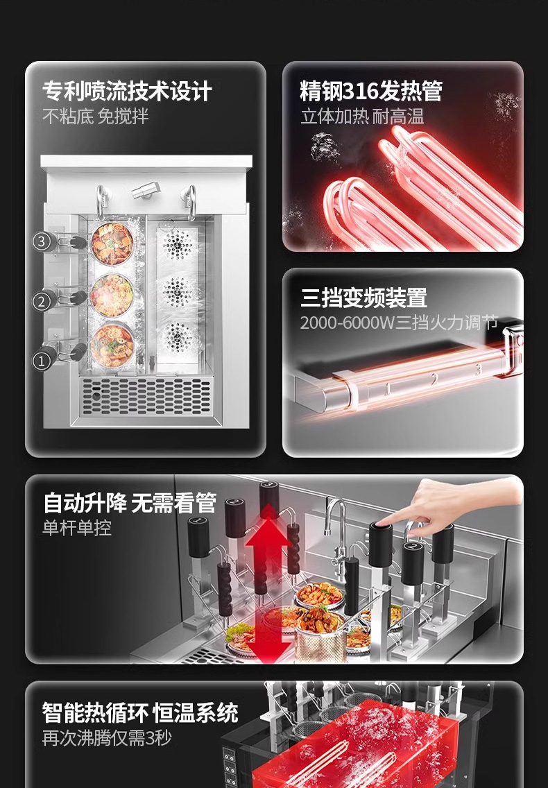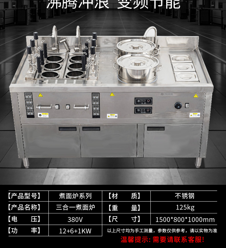 三合一煮面爐,全新升級(jí),自動(dòng)升降再次沸騰,僅需3秒。316精鋼加粗發(fā)熱管、升級(jí)噴流技術(shù)、低功耗變頻技術(shù)。煮面爐三合一升級(jí),沸騰沖浪、變頻節(jié)能。