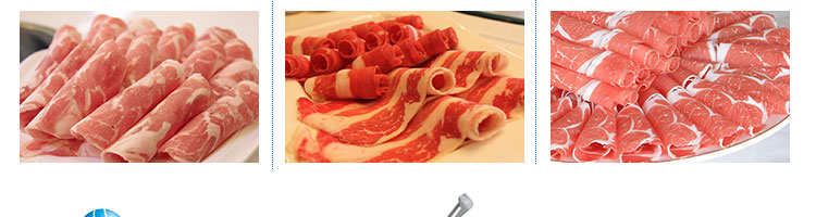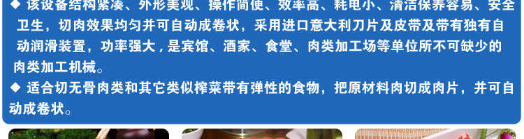 SA-350H 全自動落地式切片機,適合切無骨肉類和其他類似榨菜帶有彈性的食物,把原材料肉切成肉片,并可自動成卷狀。可切牛肉片、羊肉片等