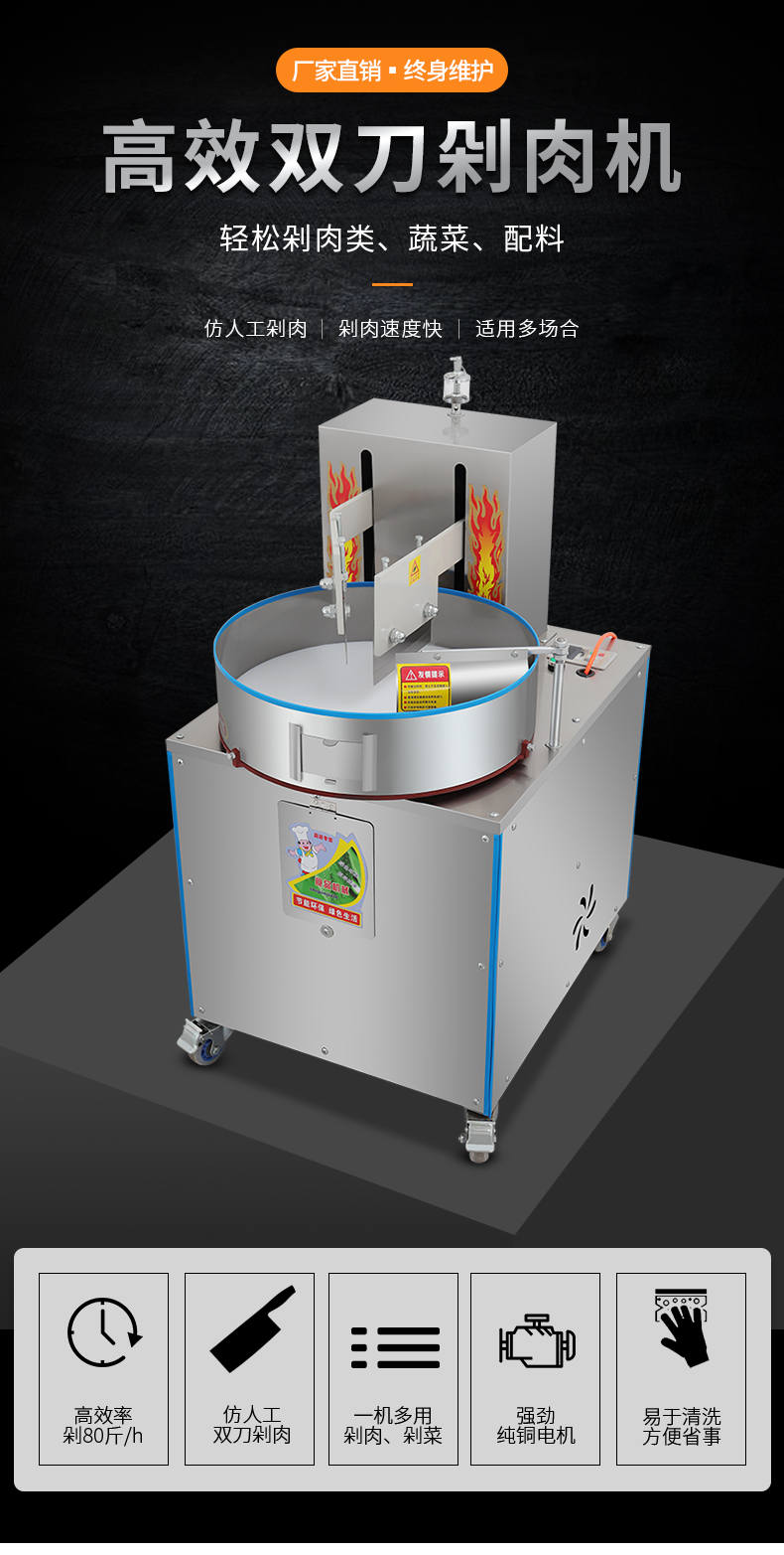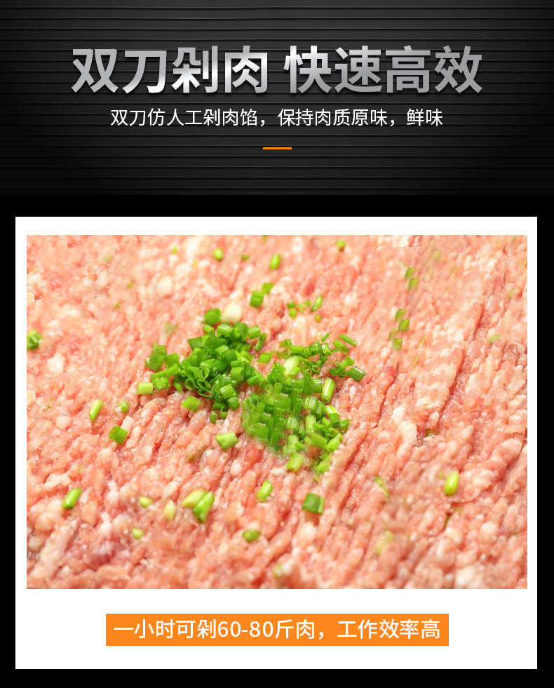 XZ-FL30剁肉機,高效雙萬剁肉機,輕松剁肉類、蔬菜、配料。仿人工剁肉、剁肉速度快、適用多場合。輕松搞定各種食材旭眾雙刀剁肉機,讓你告別人工,高效剁各種食材。不銹鋼穩定機身加厚不銹鋼板材,堅固耐用,不易生銹,延長使用壽命