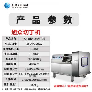 XZ-QD400切丁機,替您排憂解難全自動商用切丁機切片、切絲、切丁,功能強大,滿足您的使用需求。多功能&實用人即可操作,切出自己想要的規格,滿足商用多種需求。