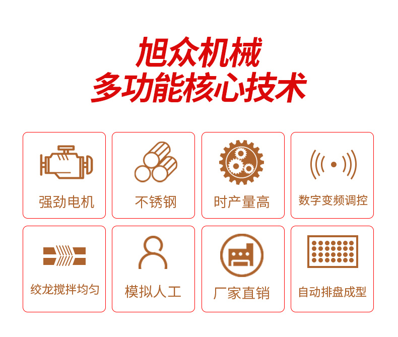◆觸摸屏自動控制搓圓擺盤一體成型技術,使得制品外形美觀,大小均勻,表面光亮細膩、口感柔滑,彈韌性佳。