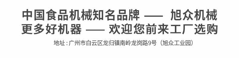 廣州旭眾食品機械有限公司是一家集科研開發,生產設計,營銷服務為一體的現代化生產企業。現代化生產車間,精湛制造技術,所產機械歷經市場重重考驗,不斷贏得海內外客戶的贊譽。