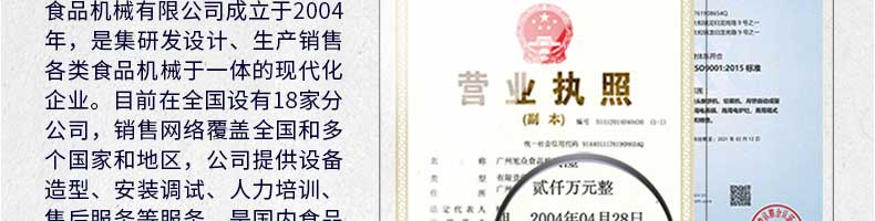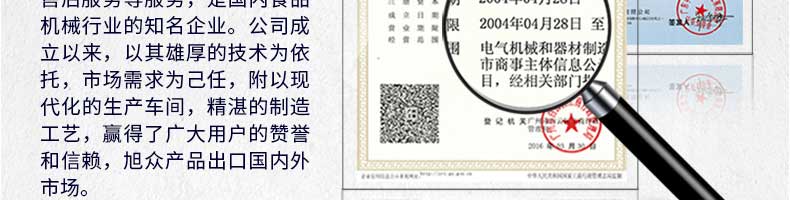廣州旭眾食品機械有限公司是一家集科研開發,生產設計,營銷服務為一體的現代化生產企業。現代化生產車間,精湛制造技術,所產機械歷經市場重重考驗,不斷贏得海內外客戶的贊譽。