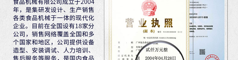 廣州旭眾食品機(jī)械有限公司是一家集科研開發(fā),生產(chǎn)設(shè)計,營銷服務(wù)為一體的現(xiàn)代化生產(chǎn)企業(yè)?,F(xiàn)代化生產(chǎn)車間,精湛制造技術(shù),所產(chǎn)機(jī)械歷經(jīng)市場重重考驗,不斷贏得海內(nèi)外客戶的贊譽(yù)。