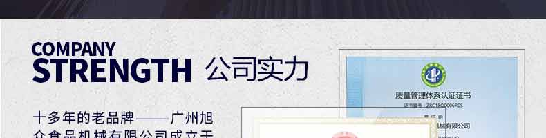廣州旭眾食品機械有限公司是一家集科研開發,生產設計,營銷服務為一體的現代化生產企業?,F代化生產車間,精湛制造技術,所產機械歷經市場重重考驗,不斷贏得海內外客戶的贊譽。