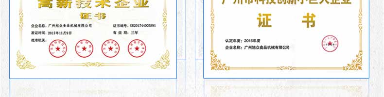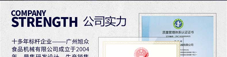 廣州旭眾食品機械有限公司是一家集科研開發,生產設計,營銷服務為一體的現代化生產企業?,F代化生產車間,精湛制造技術,所產機械歷經市場重重考驗,不斷贏得海內外客戶的贊譽。