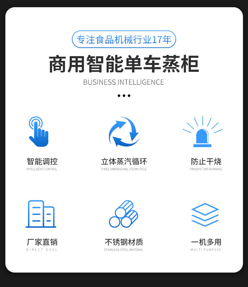 單車蒸柜,整機(jī)不銹鋼材質(zhì)本機(jī)由內(nèi)膽殼、保溫層、外護(hù)板組成,整機(jī)采用優(yōu)質(zhì)不銹鋼,加上硅膠密封及硅酸鋁保溫材料,堅(jiān)固、耐用、保溫效果好,外形美觀。循環(huán)均勻發(fā)熱,專門用于發(fā)熱管干燒空氣,溫度任意調(diào)節(jié),讓食物口感怡到好吃