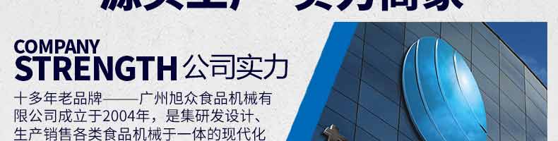 廣州旭眾食品機械有限公司是一家集科研開發,生產設計,營銷服務為一體的現代化生產企業?,F代化生產車間,精湛制造技術,所產機械歷經市場重重考驗,不斷贏得海內外客戶的贊譽。